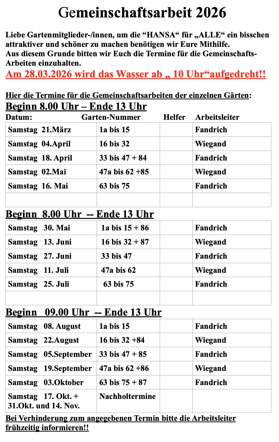 3. Wasser aufdrehen 28.03.2026 ab 10 Uhr